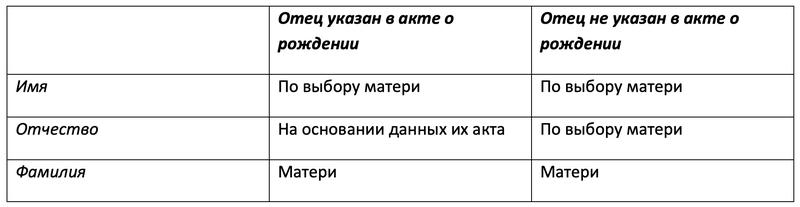 Когда мать и отец ребенка не являются супругами, а данные об отцовстве не установлены, сведения в свидетельство вносятся особым образом.
