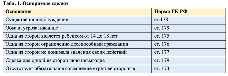 В законодательстве РФ приведены конкретные основания, наличие которых позволяет признавать сделки недействительными.