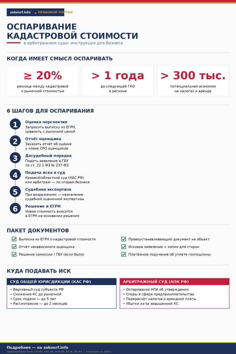Оспаривание кадастровой стоимости недвижимости в арбитражном суде: пошаговая инструкция для бизнеса