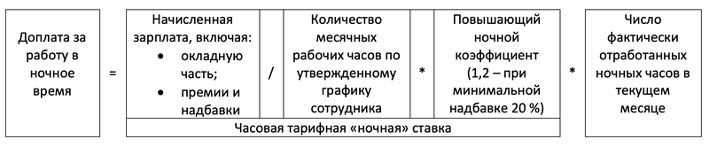Алгоритм расчета доплат за ночную работу