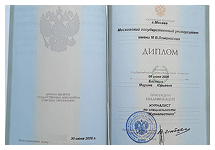 - Сибирская академия государственной службы, юридический факультет, специальность – юриспруденция, юрист, 2003 г.